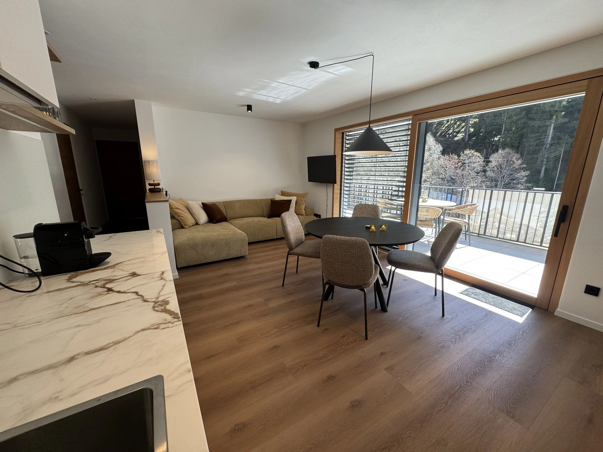 In our boutique apartment, you can enjoy this daily spectacle from the front row. We have combined modern Alpine design with the warm atmosphere of the mountains, so that after a day in nature, you can return home to surroundings as enchanting as the view itself.